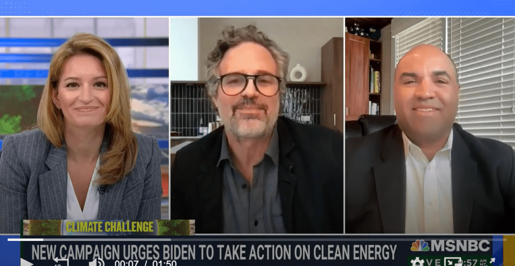 Actor and environmental advocate, Mark Ruffalo, and Kevin Johnson, a military veteran- Board Director of the Environmental Defense Action Fund, were on MSNBC on April 11 to urge President Biden to prioritize clean energy independence. They requested that the president invoke the Defense Production Act (DPA).