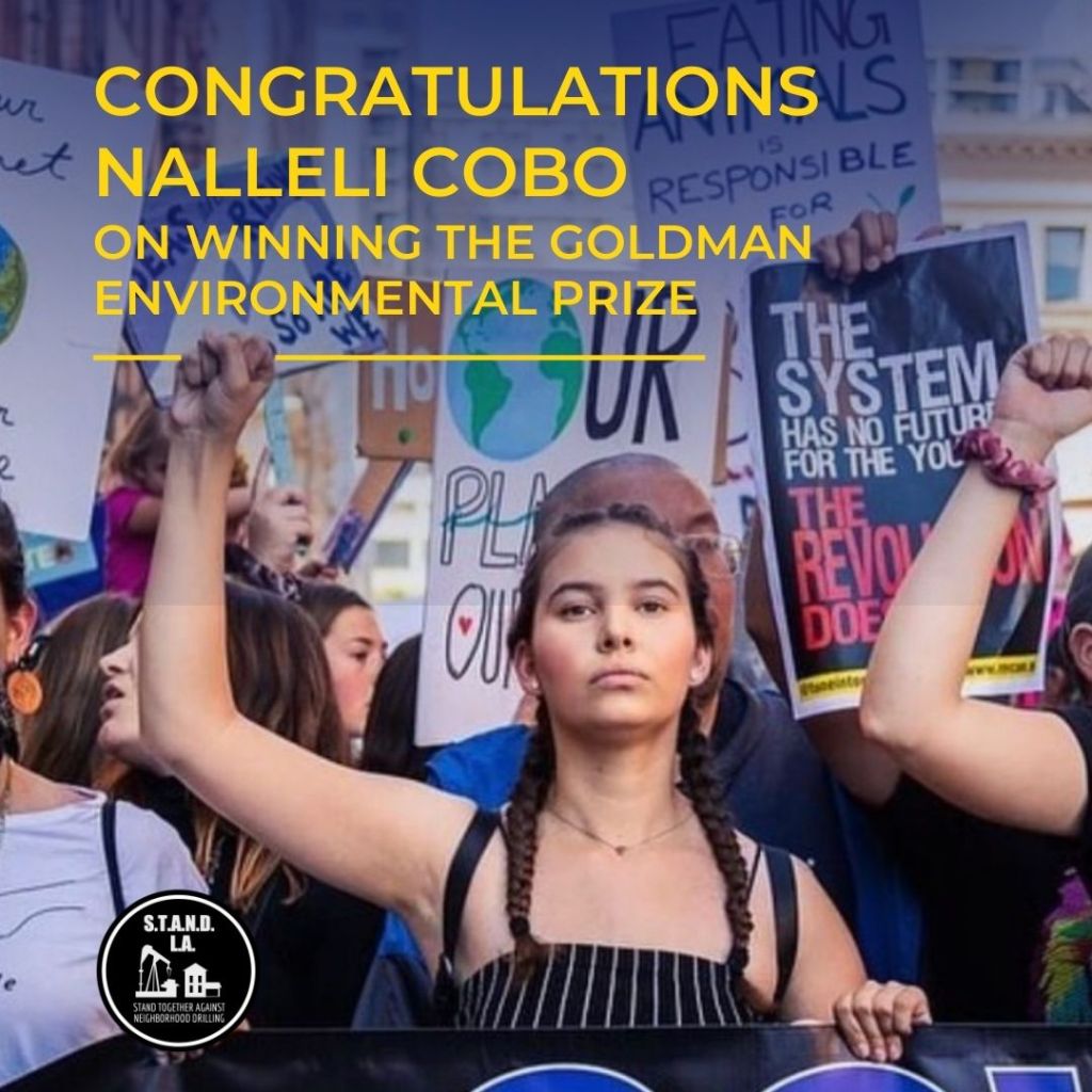 LOS ANGELES — Today, Los Angeles resident and environmental justice activist Nalleli Cobo, 21, received the Goldman Environmental Prize for her work to end neighborhood oil drilling in South Los Angeles and across California. The Goldman Environmental Prize is awarded to grassroots environmental champions from around the world who take significant action to combat climate change and to protect and enhance the natural environment.