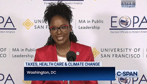 “. . . I’m excited by the Inflation Reduction Act. It is a climate justice law. To achieve equality — we must solve and work for environmental justice for all. The Inflation Reduction Act’s focus on environmental justice and Justice40 areas is historic and puts us on that path. . . . When I think of the environmental justice leaders and civil rights leaders that came before us, I am humbled. When I think about civil rights, women’s rights, equal rights — and especially equal voting rights, I see this law moving us all in the direction of a more perfect Union — moving us towards that hopeful future, moving us toward a true American Democracy.” More